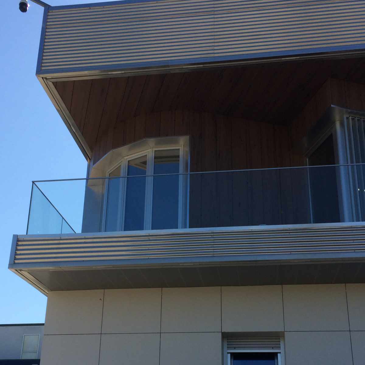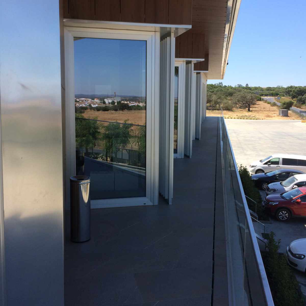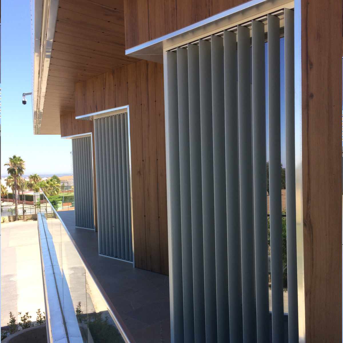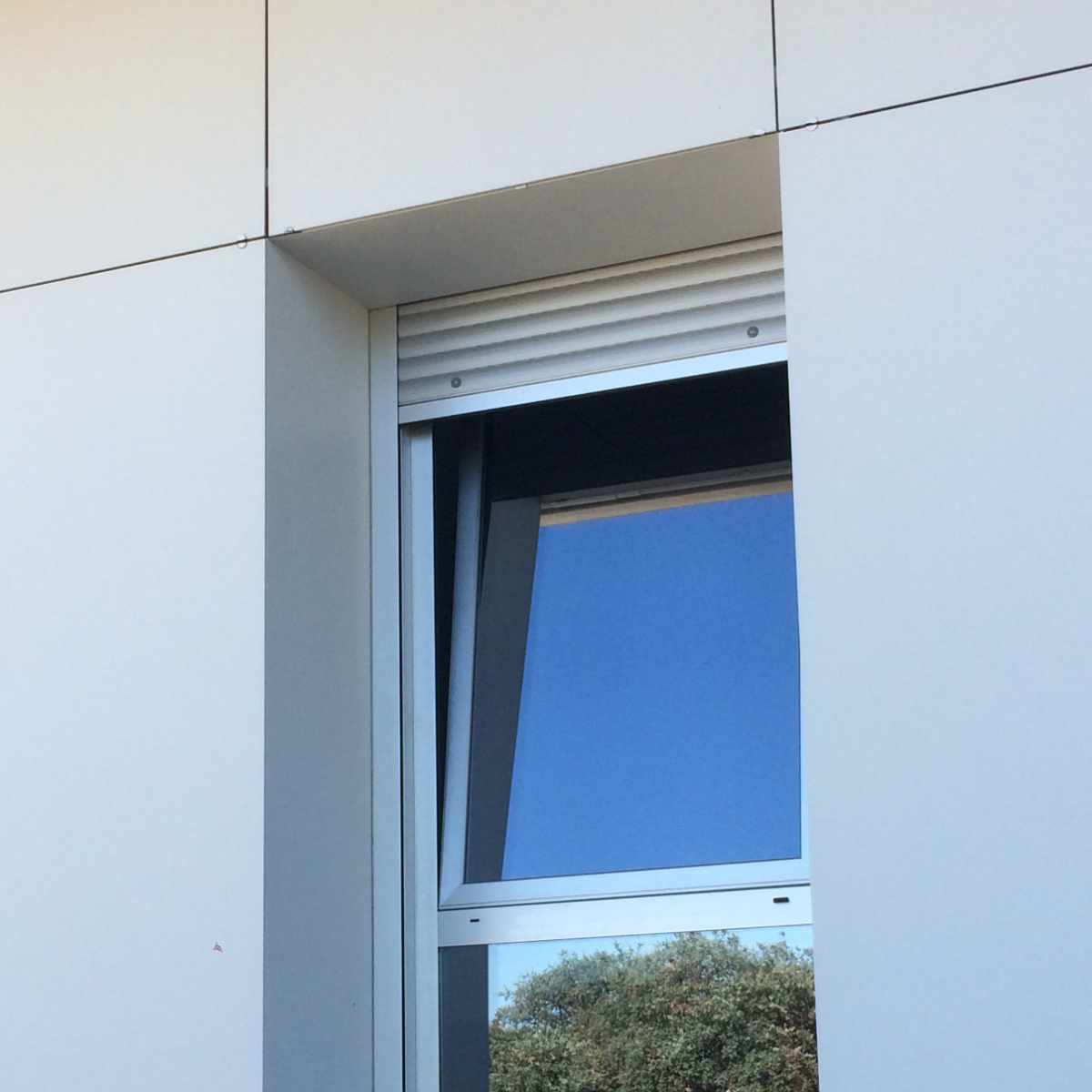 Edificio administrativo de estética industrial hace uso de todo tipo de mecanismos de alta calidad, como ventanales de grandes dimensiones, muros cortina para su terraza e interiores, cerramientos fijos y correderos y ventanas abatibles que permiten el flujo de aire desde el exterior sin comprometer la identidad visual.